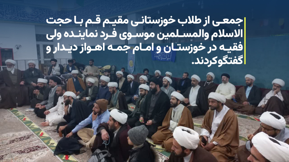 جمعی از طلاب خوزستانی مقیم قم با حجت الاسلام والمسلمین موسوی فرد نماینده ولی فقیه در خوزستان و امام جمه اهواز دیدار و گفتگو کردند.